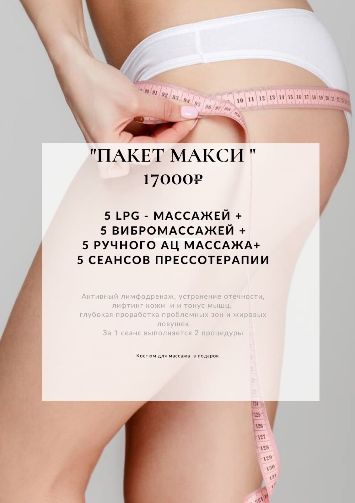 Я прошла комплекс массажей у мастера Марины-это просто настоящий МАСТЕР СВОЕГО ДЕЛА!Девочки-хотите подтянутое тело-обязательно попробуйте комплекс СТАНДАРТ на себе!